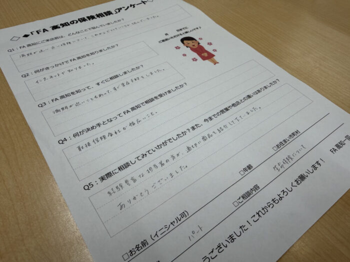 【生命保険のご相談】T様50代パート吾川郡